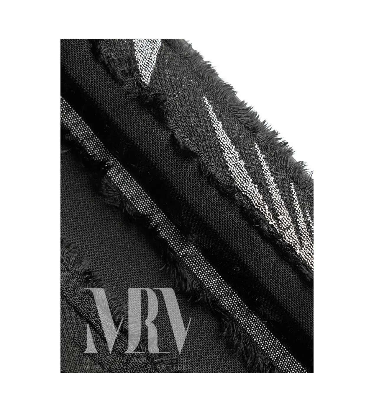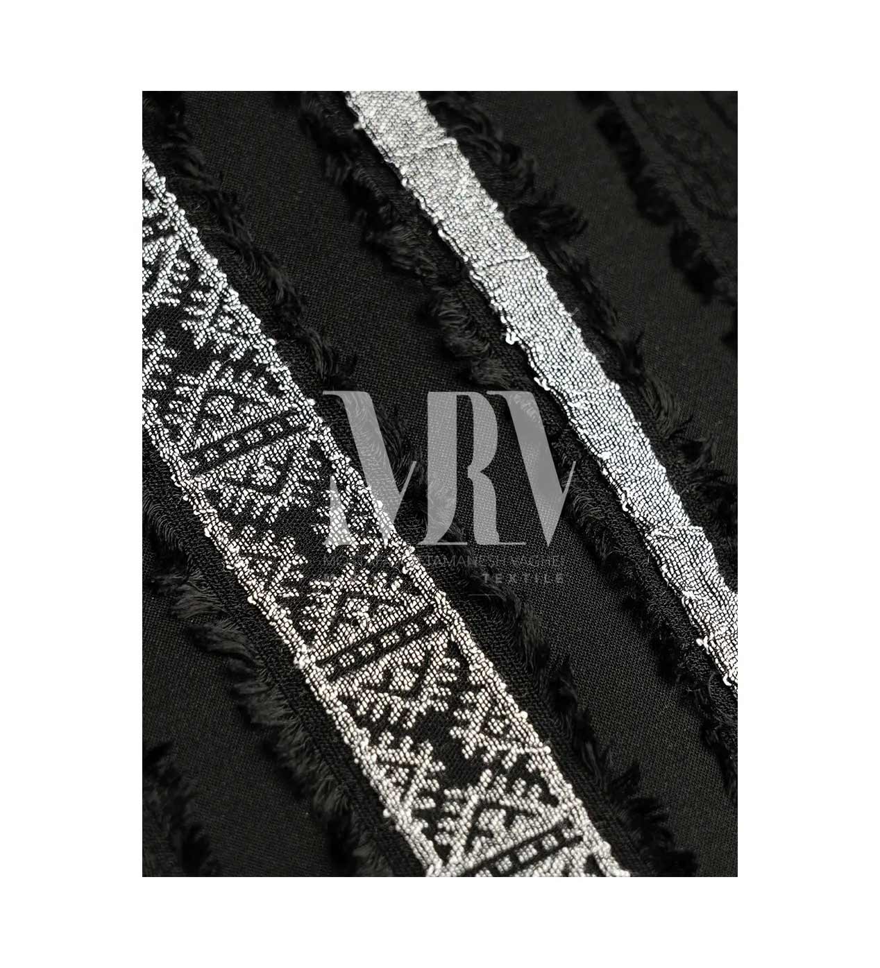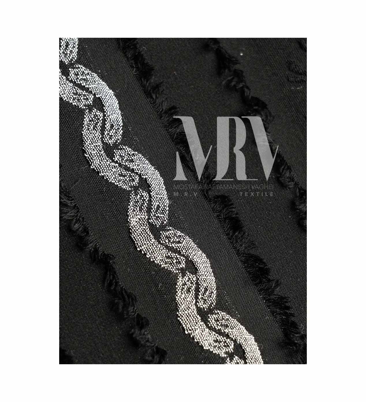 لباسهایی که با این پارچه دوخته میشوند، ظاهری فانتزی، خاص و لاکچری دارند. ریشهای ظریف روی بافت ژاکارد، حس لوکس بودن را دوچندان میکند و برای طراحی لباسهای مجلسی و استایلهای خاص بسیار مناسب است. -